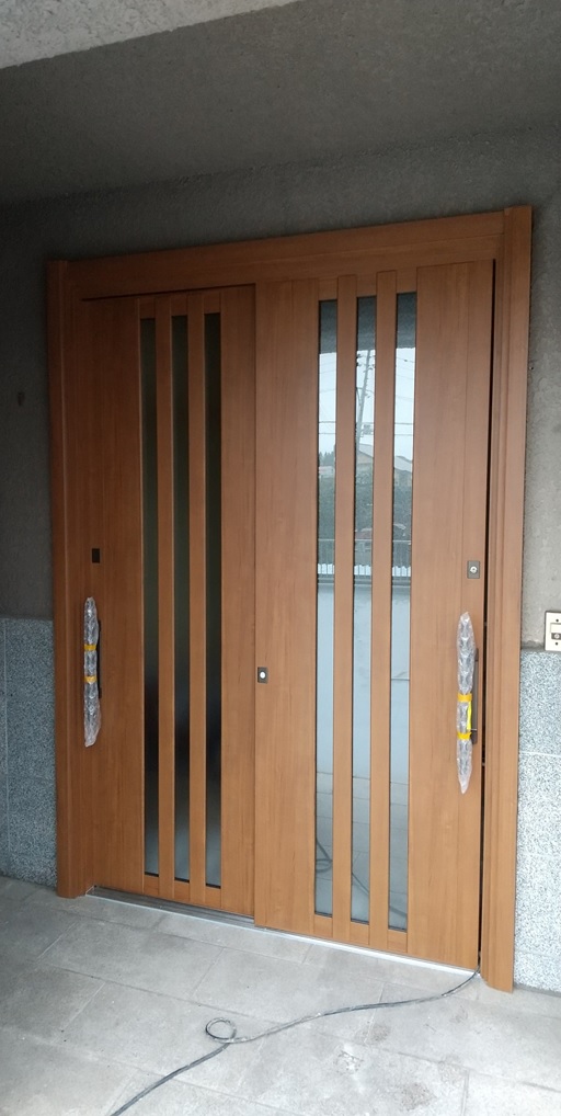 今ある玄関引戸の枠はそのまま残し、新しい枠をかぶせるだけの簡単施工。
